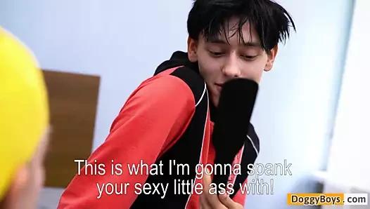 İlk Kez Ağrılı Anal İçin Pürüzsüz Sıcak Twink İzci İçinde Ahşap